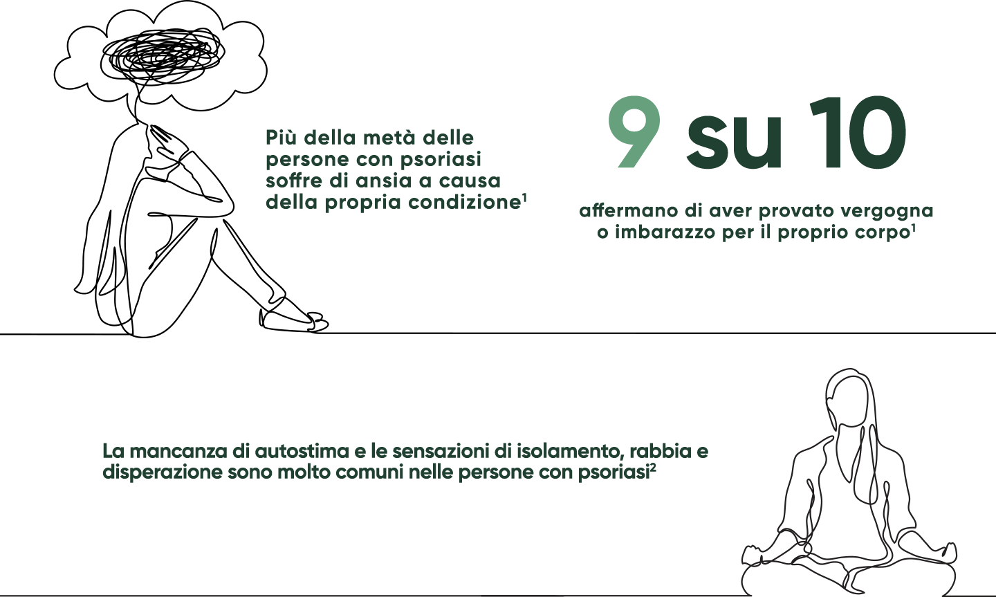 Con la psoriasi è normale sentirsi messi alla prova e avere alti e bassi. Ognuno ha un'esperienza individuale della propria malattia. Non esiste un modo di sentirsi "giusto" o "sbagliato".